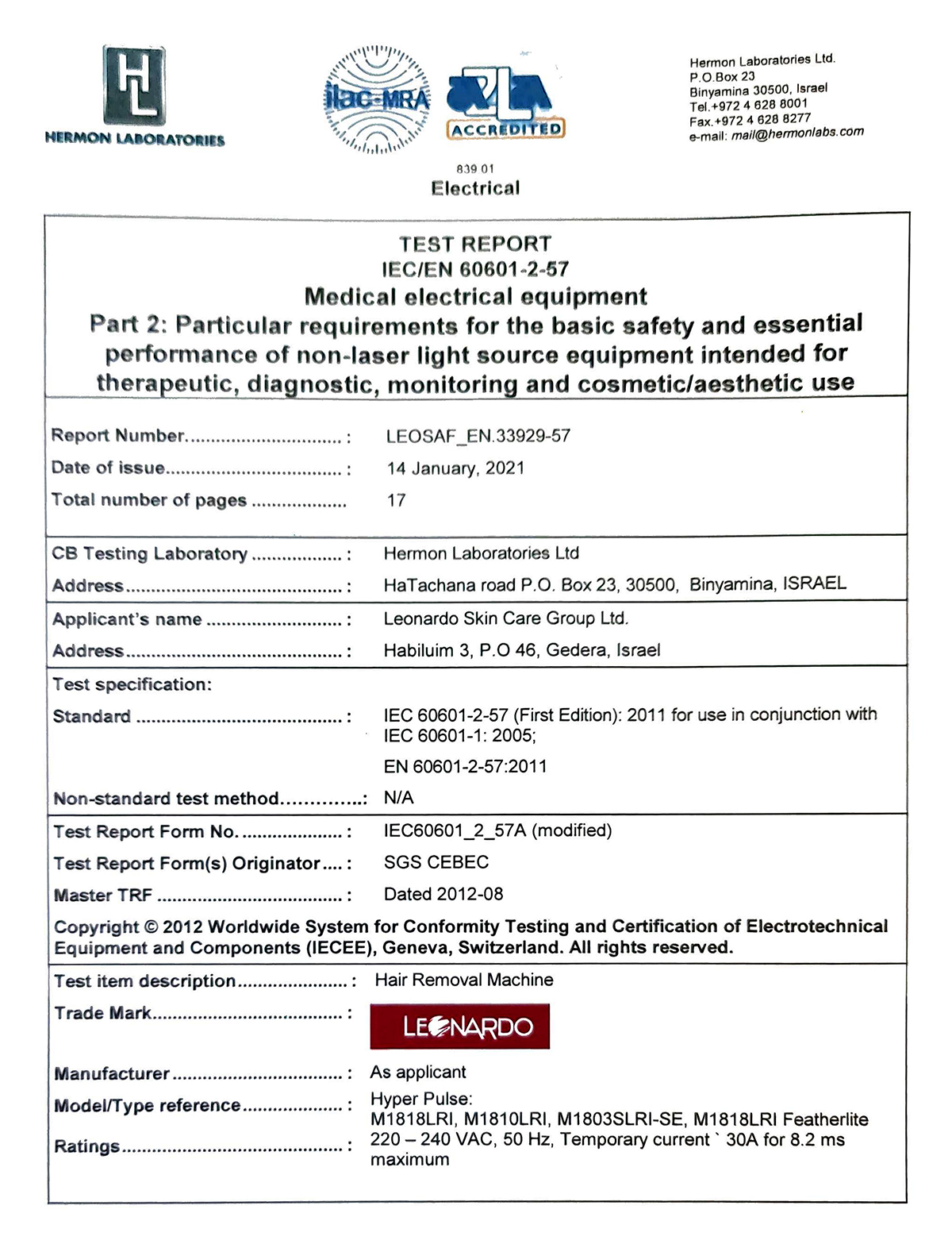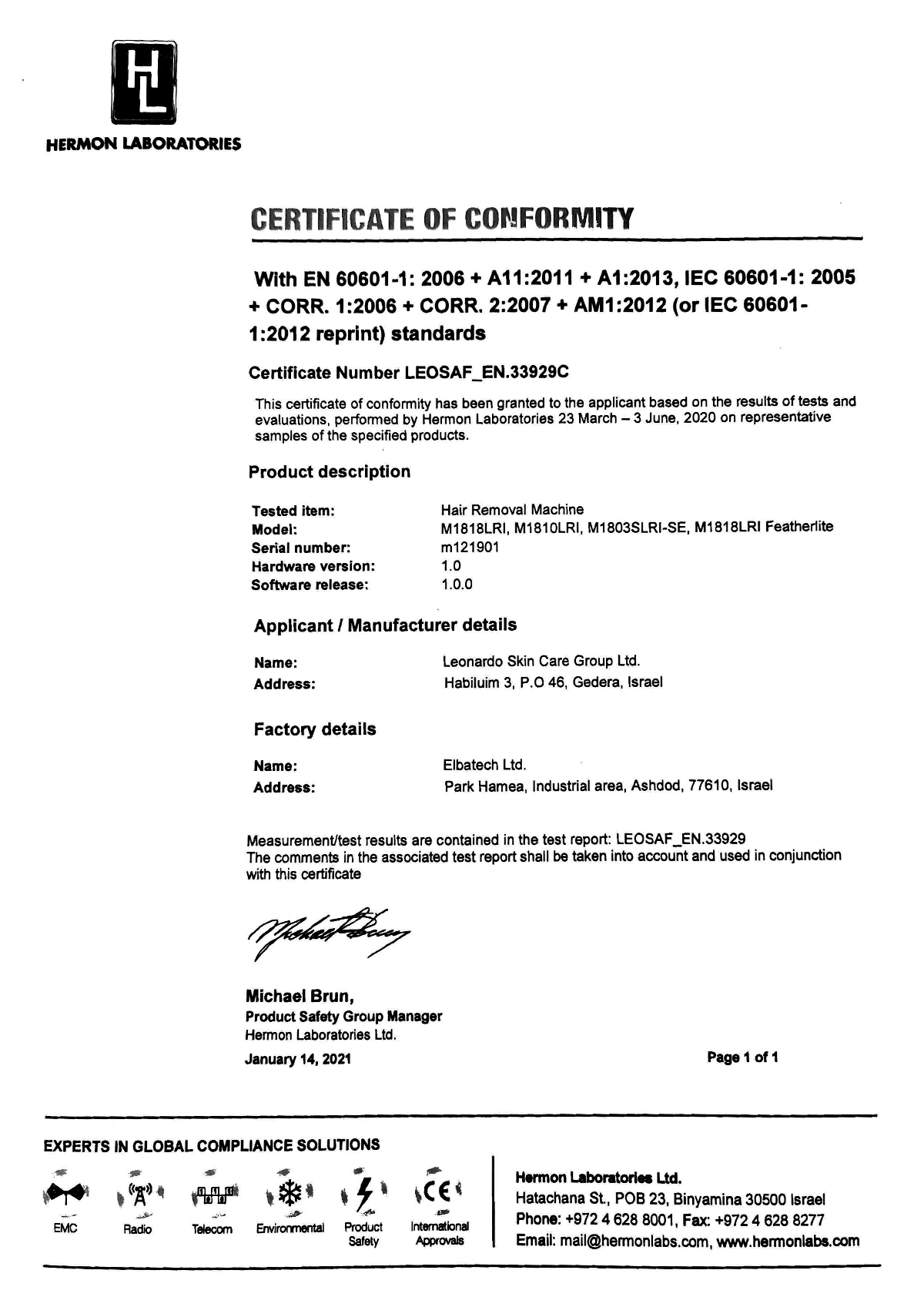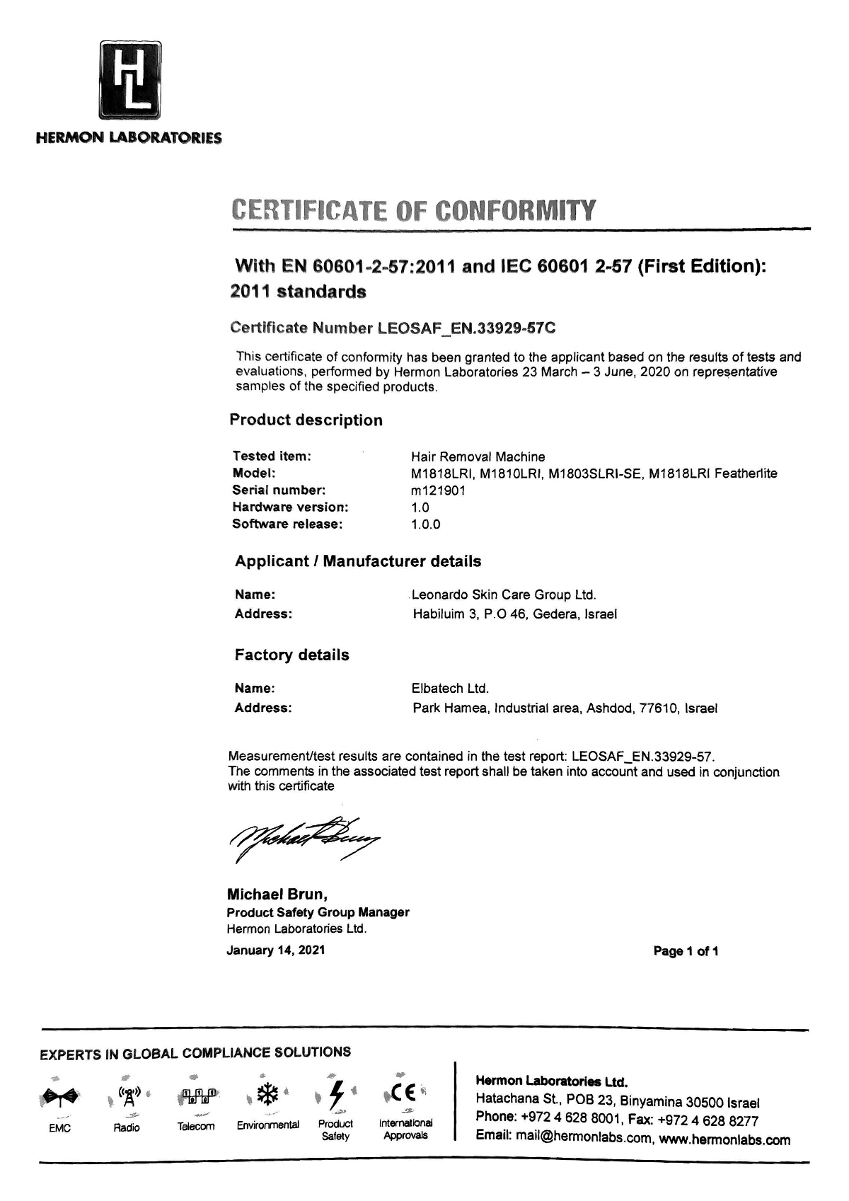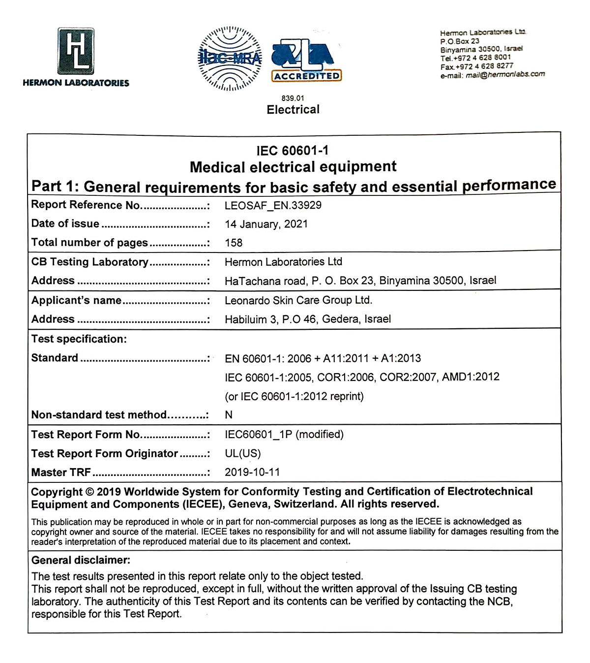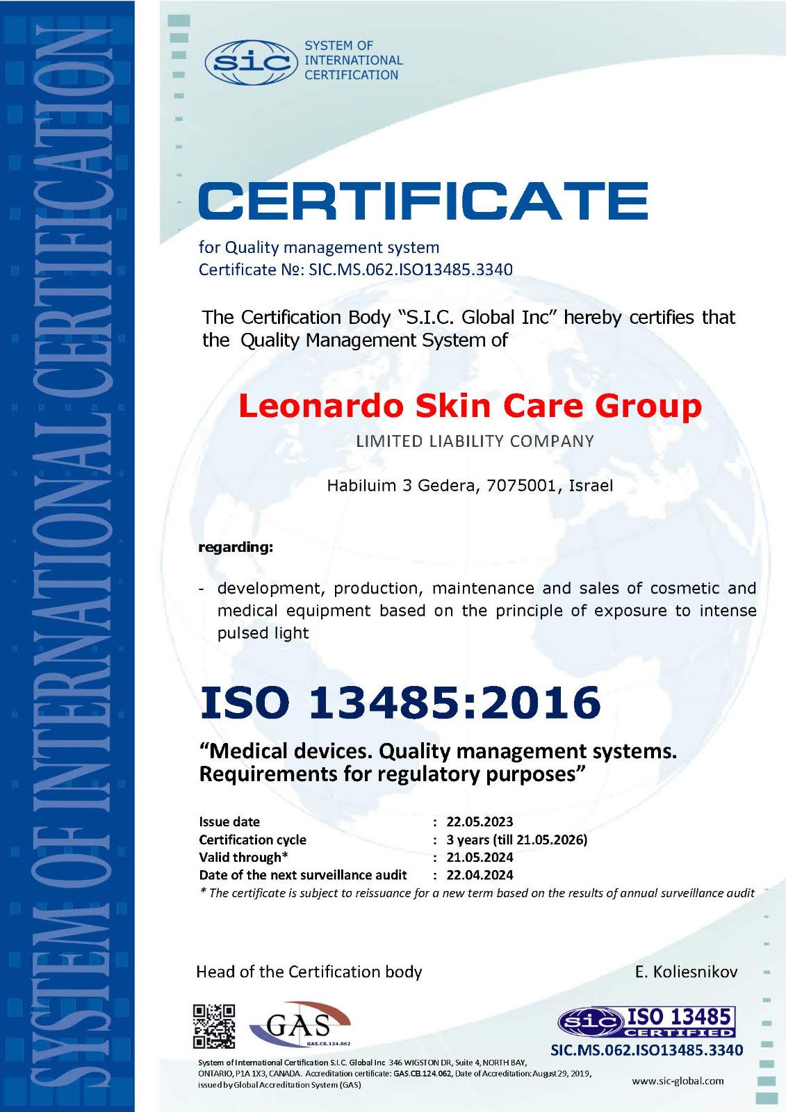 חברת לאונרדו קוסמטיקה, מייצרת מכשור טכנולוגי מתקדם ביותר לקליניקות ומכוני יופי, כאן בישראל, במפעלי לאונרדו העובדים תחת התקן הרפואי המחמיר ISO13485 וכמובן ISO9001 , ובשיתוף חברת אלבטק ייצור ,בחטיבה האזרחית, אשר נמצאת באשדוד ועובדת תחת התקן התעופתי המחמיר AS9100, תחת תקן מדיקלי ISO13485 וכמובן ISO9001.