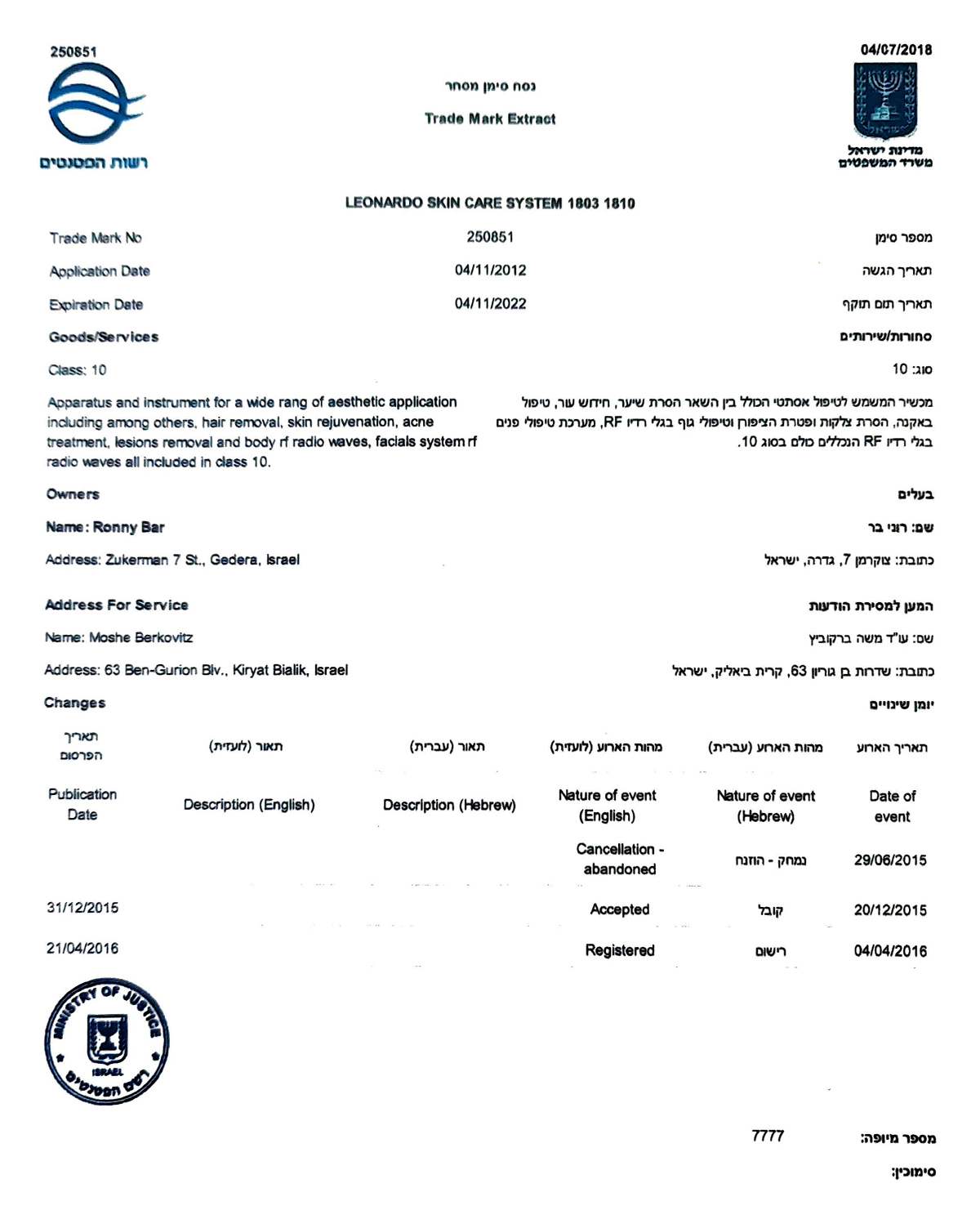 מאז היווסדה, משקיעה חברת לאונרדו במחקר ובפיתוח טכנולוגיות מתקדמות בתחום טיפולי היופי והסרת השיער ובפיתוח תכשירי קוסמטיקה יעילים ומוכחים, המשלימים בצורה סינרגטית את פעולות המכשור של החברה.